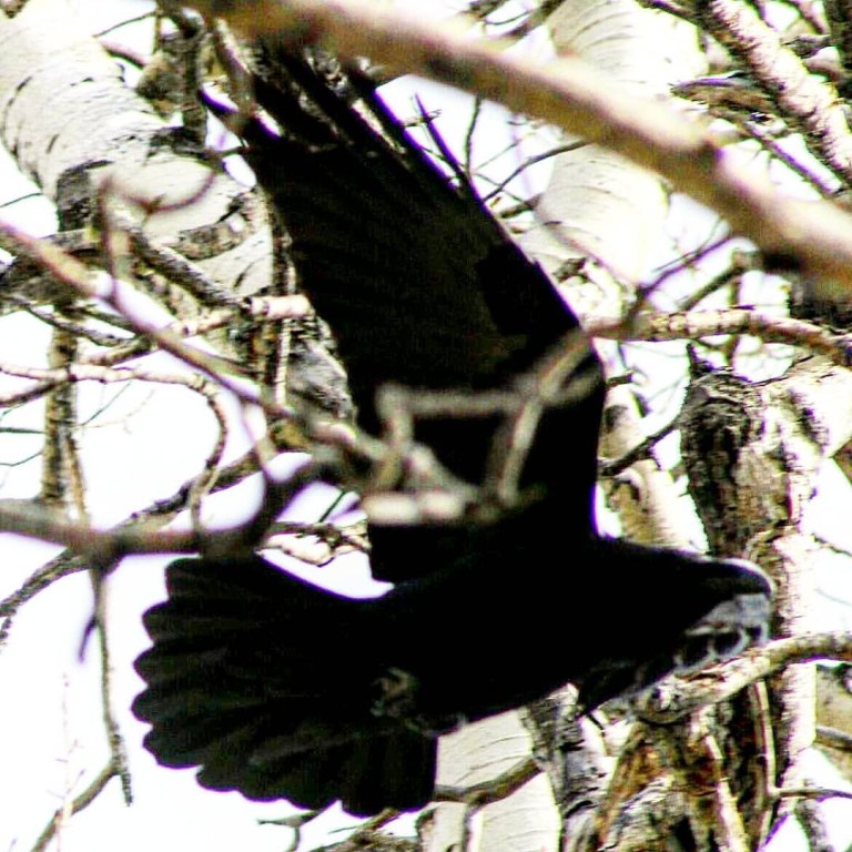 A beautiful raven (family Corida) flying from its nest in Fairbanks, Alaska. Can you tell the difference between a raven and a crow?
