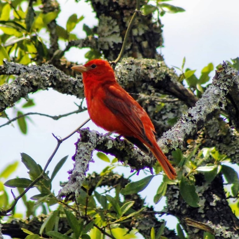 Summer Tanager perched on a branch. Colorado Bend State Park.